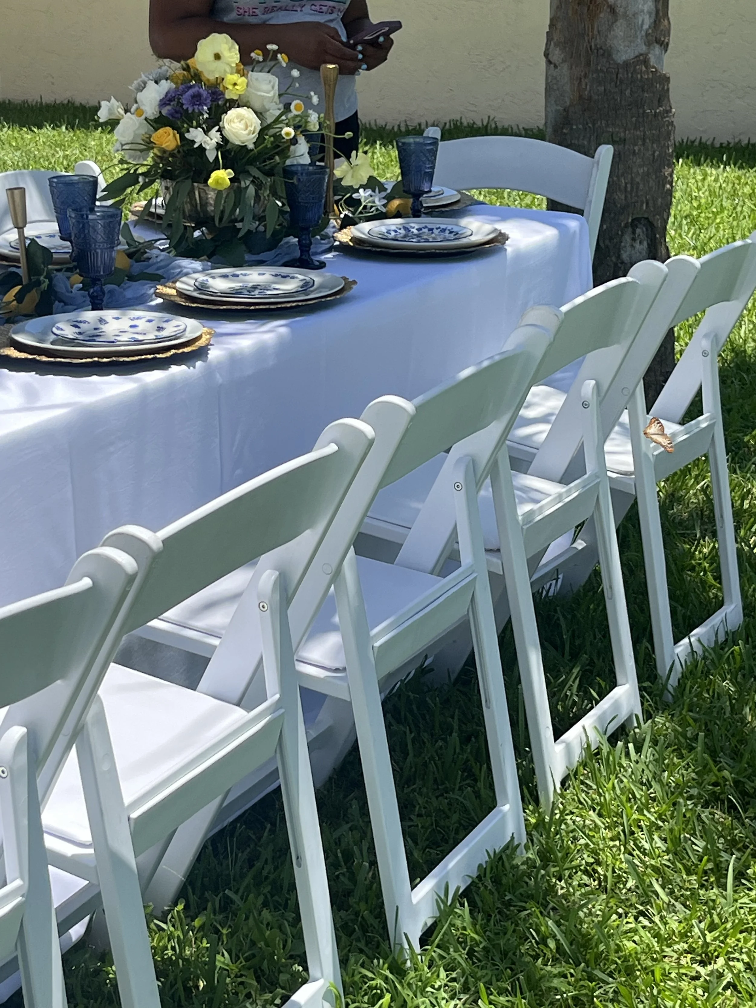 Complete your table setup with our tabletop and dining rentals, including dinnerware, flatware, glassware, and charger plates. Perfect for weddings, baby showers, birthdays, and private events throughout Margate and Broward County. Our pieces are designed to coordinate seamlessly with your tables, linens, and overall event styling.